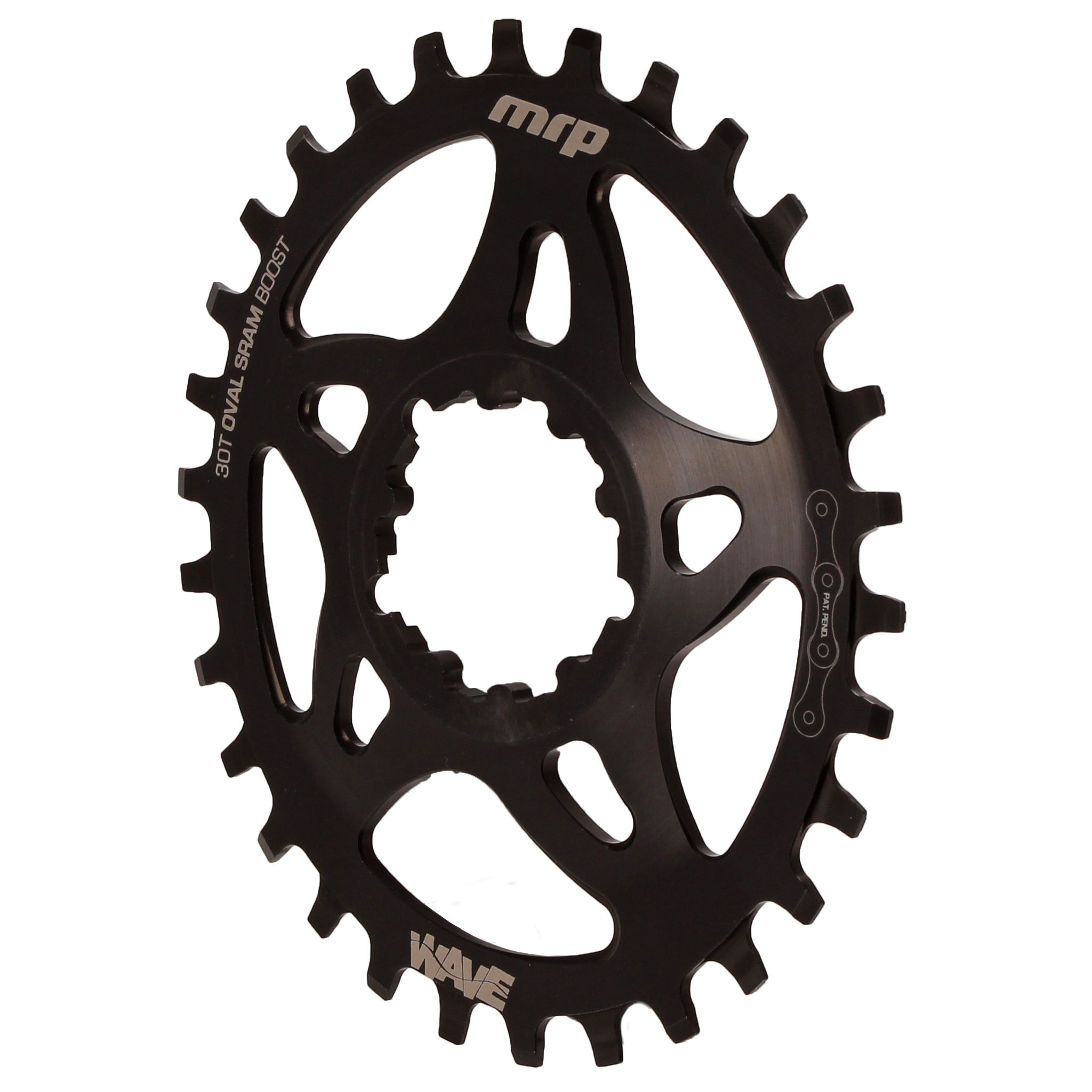 - Features an oval shape for better power transfer and traction\n- Lightweight 7075 aluminum chainring designed to work with 1x drivetrains\n- Increased security with less concentrated wear than other narrow-wide chainrings\n- Sheds mud and debris better than competing rings\n- SRAM direct mount GXP rings have a -7mm offset (28-34t), -8mm offset (36t)